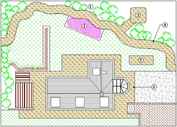 6) Gravel or wood chip barrier topping to all walkways or planted areas close to the house, if not paved.